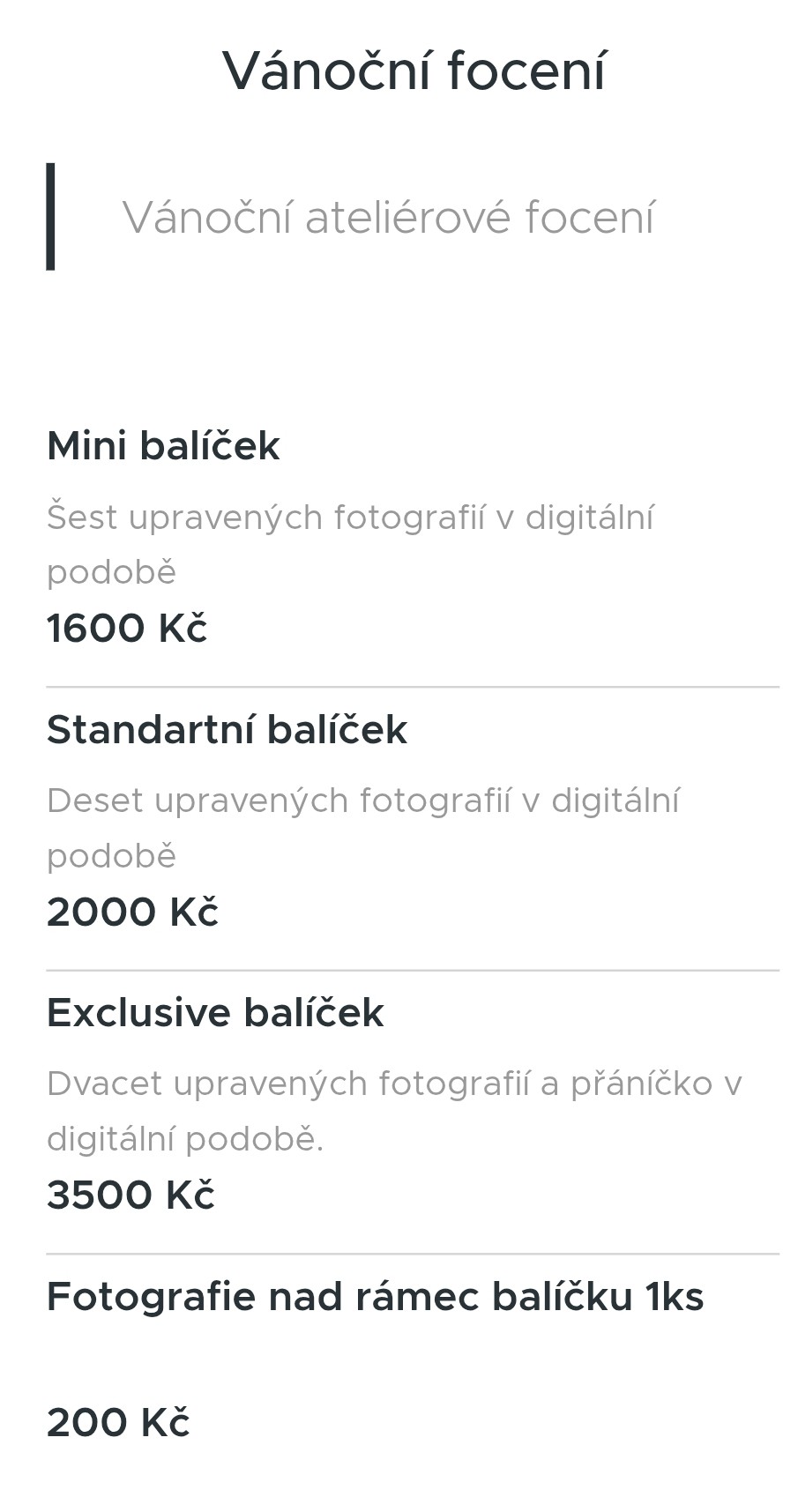 Momentálně se připravuje vánoční focení, které bude probíhat během října a listopadu.